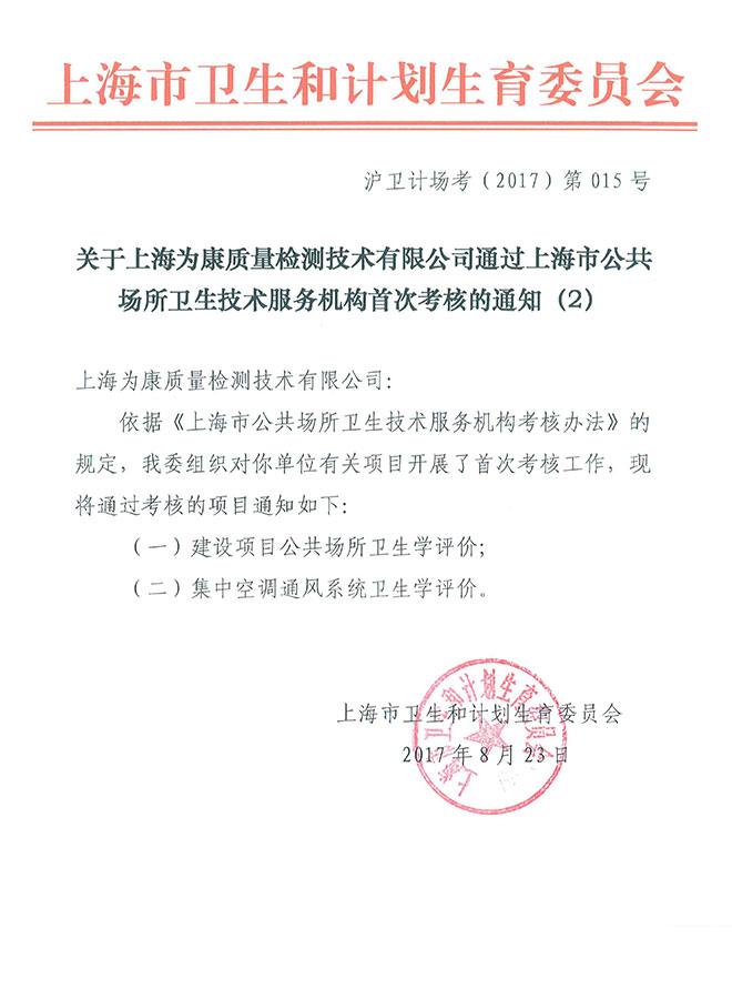 據國家《公共場所衛生管理條例》(國務院令【1987】第24號)、《公共場所衛生管理條例實施細則》(衛生部令【2011】第80號)的規定,以及上海市關于建設項目預防性衛生審查的要求,對涉及公共場所的集中空調通風系統必須進行衛生學預評價和衛生學控制效果評價,符合相關衛生要求并驗收通過后投入使用。本公司可為各類公共場所集中空調通風系統提供空調衛生學預評價和控制效果評價服務。